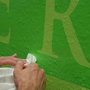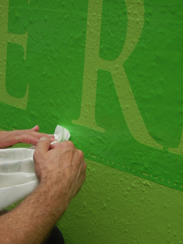 Les caractères typographiques choisis pour cette intervention s'inspirent de ceux de l'inscription placée à la base de la colonne Trajane (113 av. J.-C.) à Rome, un des exemples anciens les plus remarquables d'insertion de l'écriture dans l'espace public.