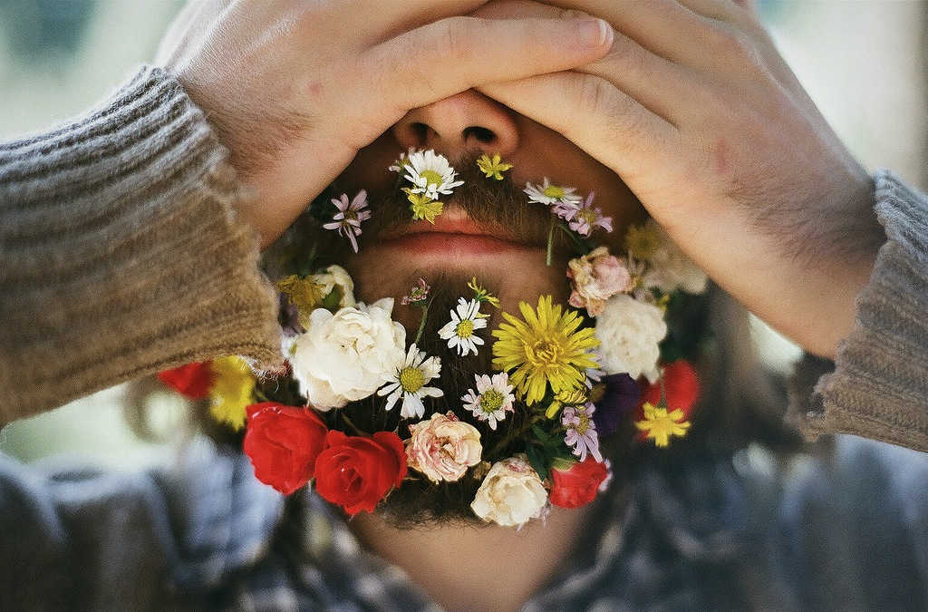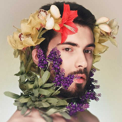 Il est rare qu'on trouve des représentations d'hommes avec des fleurs dans la publicité ou les arts visuels, sauf dans certains portraits de la Renaissance ou de la période baroque, et chez certains photographes contemporains comme l'Américain Duane Michals ou le Canadien David Rasmus, dans leurs évocations empreintes de gravité et de spiritualité, ou le duo français Pierre et Gilles, qui exploitent la dimension du kitsch. En effet, en général les fleurs sont davantage associées à la féminité, à la délicatesse et à la fragilité. Dans un contexte masculin, les fleurs évoquent la figure du dandy ou celle du nouveau marié qui porte un oeillet, une rose ou une orchidée à la boutonnière.